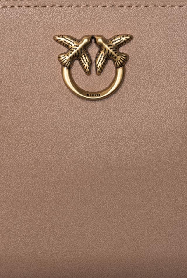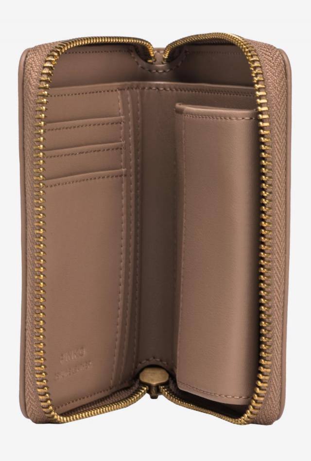 Portafoglio zip-around di forma quadrata in morbida pelle mano seta, personalizzato con placchetta Love Birds Diamond Cut su base in pelle. L’interno è foderato in polycotton. Chiusura con zip.