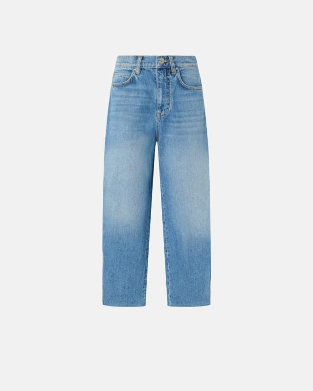 Jeans cinque tasche a vita alta in denim blue vintage caratterizzati da inserto laterale in organza, leggera e dall’effetto trasparente, per un tocco femminile e intrigante. I jeans sono caratterizzati da gamba morbida, leggermente arrotondata e alti alla caviglia, per mettere in risalto le calzature che indosserai. Chiusura con zip coperta e bottone a chiodo in metallo. I jeans con inserti in organza sono perfetti per le occasioni più varie, anche per quelli più speciali insieme a una blusa e a scarpe con il tacco.