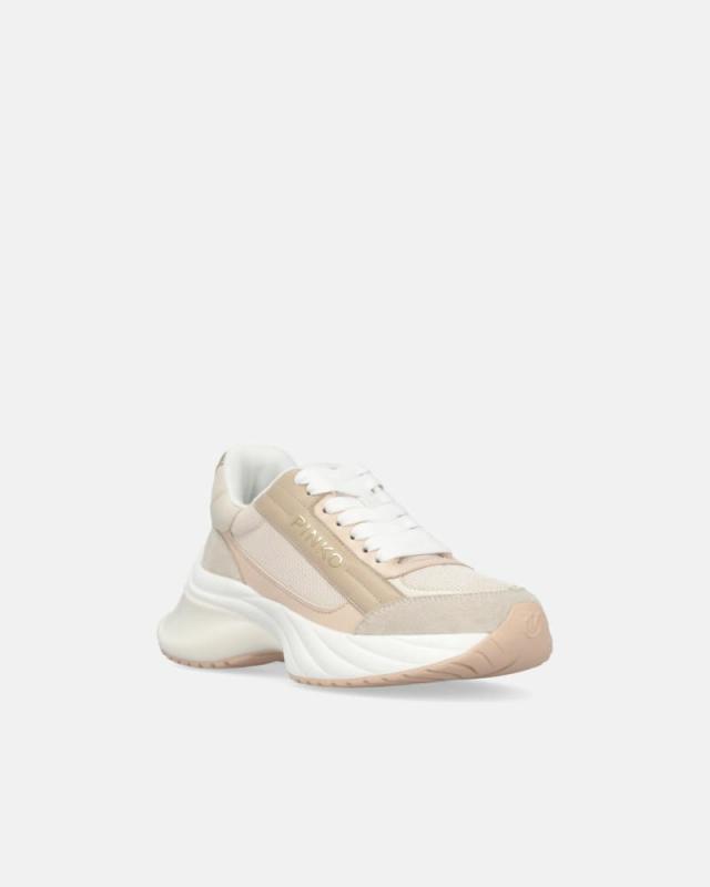 Scarpe da ginnastica Ariel con tomaia in mesh arricchita da speciali inserti in pelle liscia e suede dal finishing scamosciato. Il lato esterno delle sneakers è personalizzato con logo PINKO che conferisce un tocco di lusso e raffinatezza al design della calzatura, contraddistinto dalla caratteristica suola running. Queste sneakers sono costruite con una lavorazione strobel, che garantisce la comodità di una pantofola. All’interno, la sneaker è dotata di soletta in tessuto e fussbet alto circa 2 cm nel tacco, studiato per offrire un maggior comfort durante tutto il giorno. Le sneakers Ariel sono il modello di punta della collezione, e sono personalizzate con diversi dettagli che si abbinano alla personalità di ogni donna.
