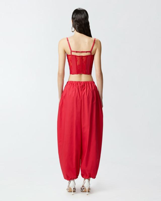 Top stile bustino realizzato in pizzo trasparente con disegni floreali, con impunture, stecche sottili e dettagli in mesh sul retro. La linea femminile del bustino è valorizzata dallo scollo sagomato e dalle spalline sottili e regolabili, con elastico inserito per una maggiore comodità. La zip invisibile nel centro dietro garantisce un design pulito ed essenziale. Eleva l’eleganza e la femminilità di qualsiasi outfit grazie a questo top, che è il sottogiacca perfetto abbinato a pantaloni sartoriali, ma anche a un paio di jeans speciali.